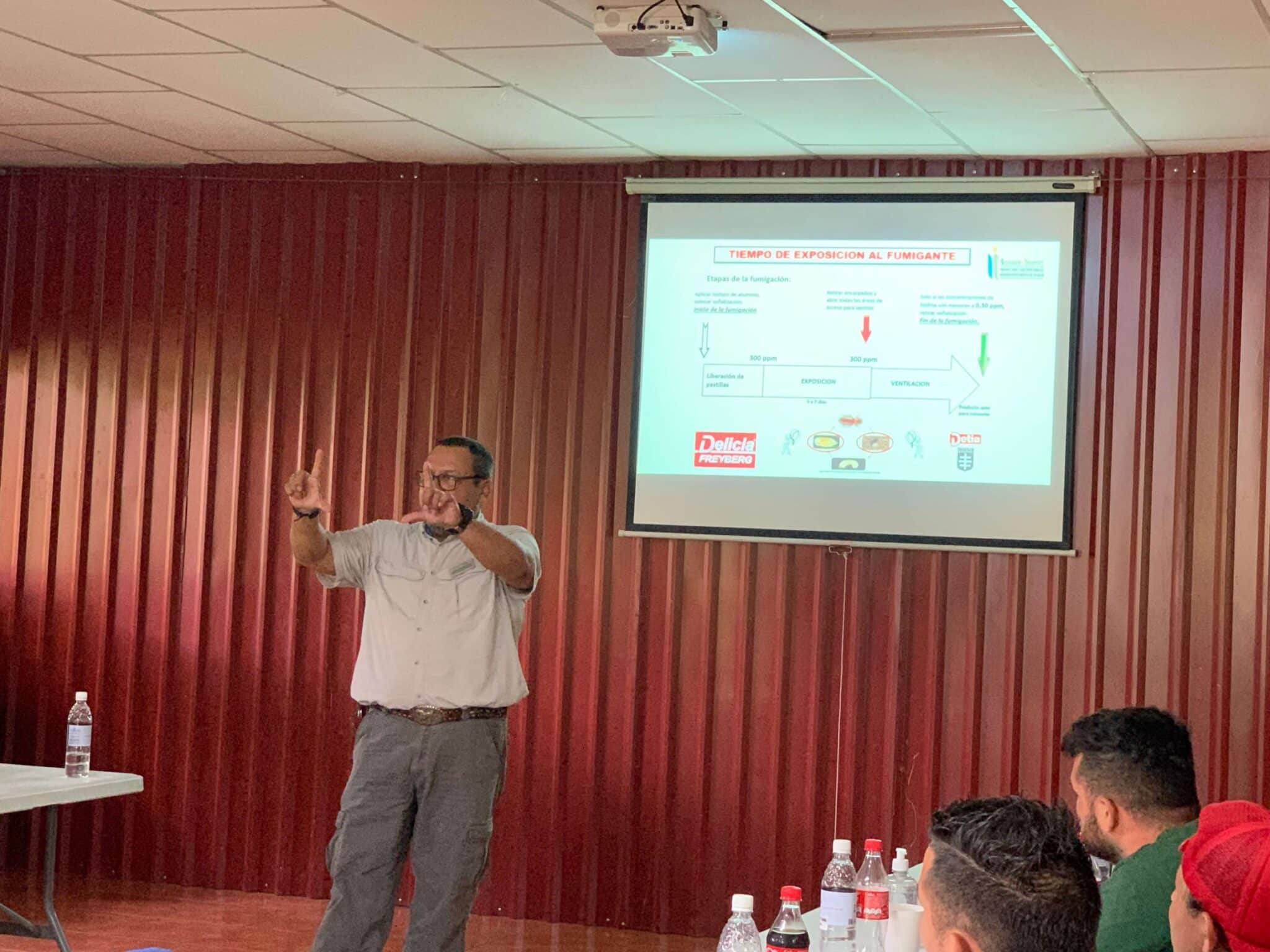 La capacitación impartida fue basada en las Generalidades del Fosfuro de Aluminio y Manejo de sus Desechos. El uso del Fosfuro de Aluminio (AIP) que luego de un proceso de hidrólisis se convierte en el gas fumigante Fosfina (PH3), viene siendo uno de los mejores métodos para el control de plagas en productos almacenados como es el caso del tabaco.